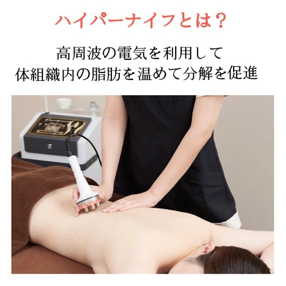 ハイパーナイフ6の効果 ハイパーナイフの期待できる効果や、 効果を高めるためのポイントをご紹介♩ 体を芯から温めるハイパーナイフの施術は、血流とリンパの流れも改善しやすくなります 血流が良くなると、代謝がアップし消費カロリーが増えるので、痩せやすい体質を目指せます また血流が良くなることで、冷えの改善にもつながります リンパの流れが改善すると、老廃物がスムーズに排出されるようになるため、むくみの軽減に期待ができます