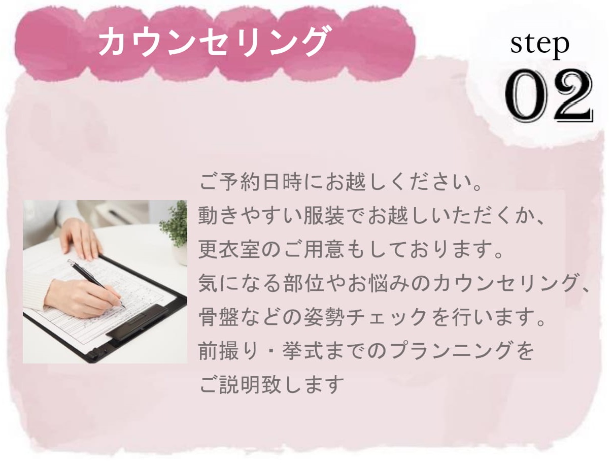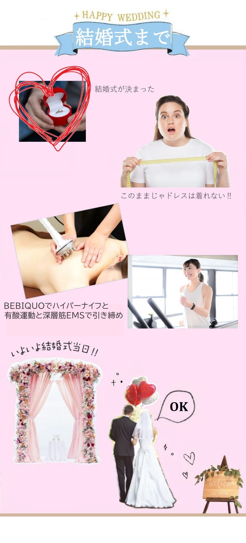 - 挙式・撮影までにダイエットしたい!背中・肩甲骨、二の腕をキレイに見せたい!小顔やデコルテをスッキリさせた!!と思っている花嫁様は多いはず。