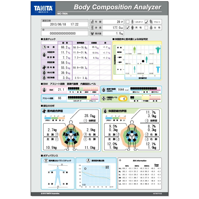 栄養指導や筋力トレーニングに必要な情報を提供、表やグラフを用いて、測定結果がわかりやすく好評です。